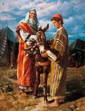 Show the E. Young painting or pictures in Old Testament Stories 33-41: Abraham and his wife Sarah couldn’t have any children, which made them very sad. When Sarah was 90 years old and Abraham was 100, the Lord finally blessed them with their firstborn son, Isaac. They loved Isaac dearly. (Abraham already had a son named Ishmael from his handmaid, Hagar. The Lord promised Hagar that a great nation would descend from their son. But…) The Lord promised Abraham that his seed would descend from Isaac – the seed meaning priesthood holders and covenant keepers (Genesis 21:12) that would be “called by his name.”