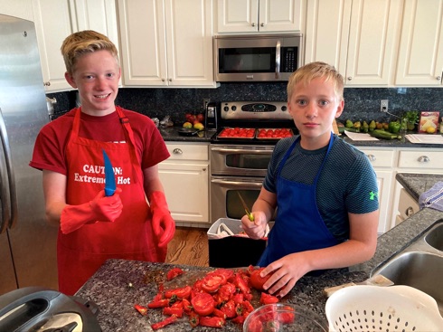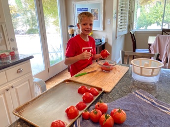 With so much time on their hands due to less school, I’ve been giving Adam and Andrew lots of extra tasks lately. (It’s awesome!) This time they took care of our garden tomatoes. They were so excited about it. Can you tell? I know it’s good for them!