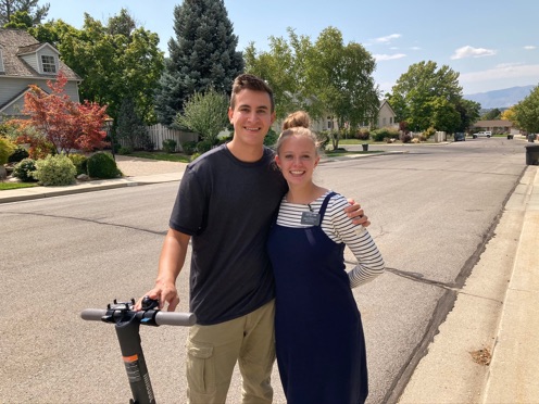 While on a very quick afternoon walk, our cousin Coleman Rowberry zoomed up the street on his electric scooter. He was “racing” with Tyler who was trudging up the road on his bicycle. It was especially fun to see Coleman because he was leaving for BYU-Idaho in 20 minutes!