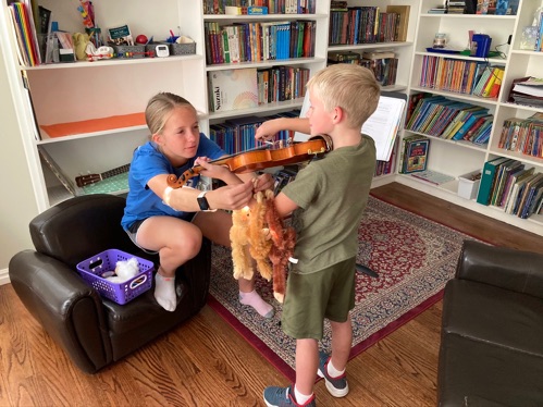 Amy saved the day by practicing violin with Mark. It has been a long time since has has practiced and she helped him a lot!