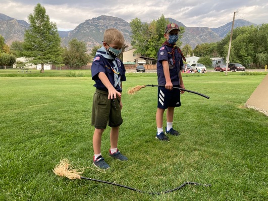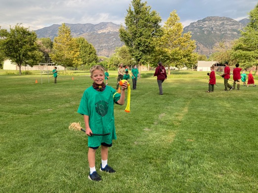 Since scouts got moved earlier, Tyler got to come. I was glad because it was their annual Quiddich match! Tyler and Mark both loved it! In the above picture, Mark is saying, “Up!” like the students in Harry Potter.