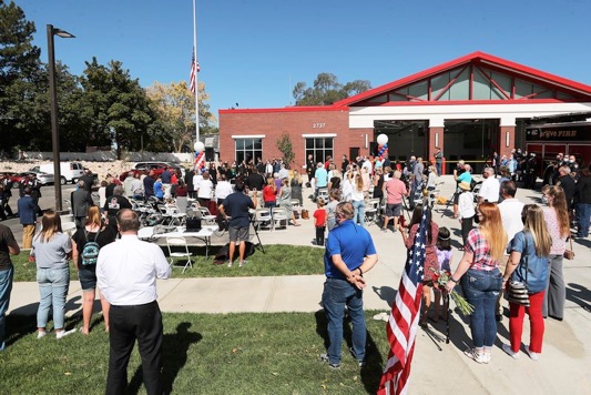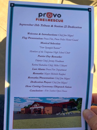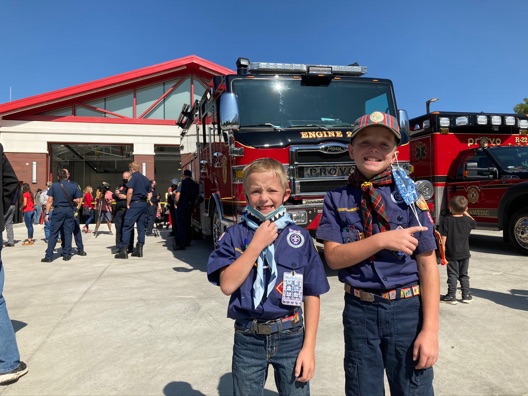 At the end of our visit, Rachel told us that we could go in her place to the dedication of the new Provo Fire Station 22 (invitation only) at 11am. I wasn’t sure if we should go, but ended up bringing both Tyler and Mark in their cub scout uniforms.