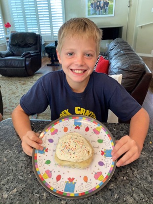 Natalie and I had our usual wake up time and exercise that morning, and then I made his requested cinnamon rolls for an after-lunch treat when they returned. (He requested grilled cheese and tomato soup for lunch again.)