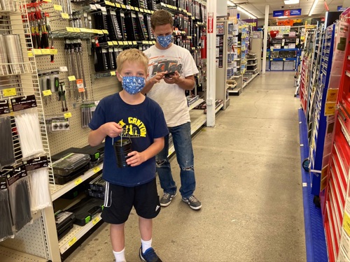 After an exciting drive through the car wash “for Tyler’s birthday,” we took Tyler birthday shopping at Harbor Freight. Jon found a coupon for the lantern he wanted, and then the checker used another coupon to give him a really cool (and free) flashlight. Bonus!