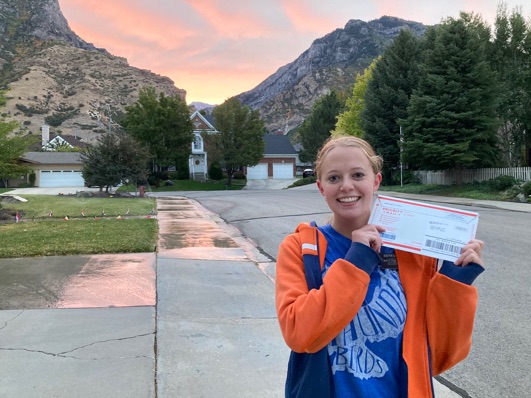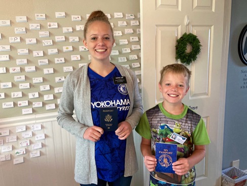 Tyler surprised Natalie with his copycat passport and missionary tag.
