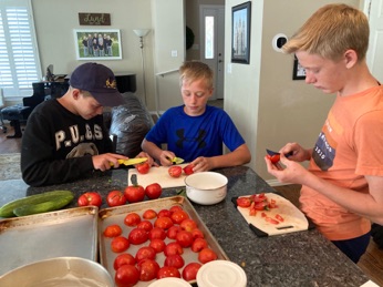 I had the boys work on tomatoes at home while I put the yogurt I made last night into containers I brought home from the cabin.