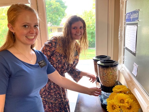 I filled one of the cereal dispensers with Sister Wolthuis’s favorite cereal: Cinnamon Toast Crunch, and they each had a small bowl right before the fireside.