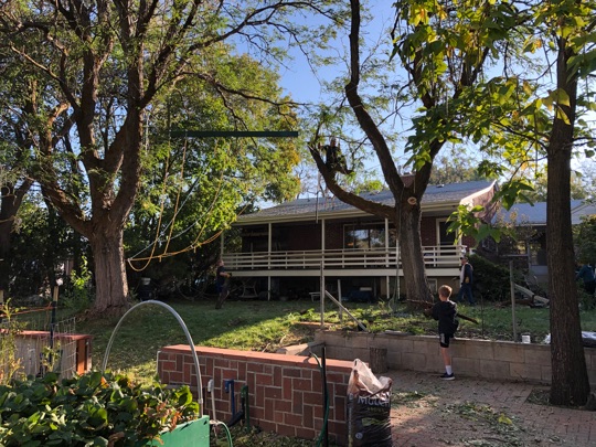 Tyler had a similar birthday morning to Andrew. Jon and the boys left our house at 6am to go help Gary and M’Jean clear all the branches and debris from the huge wind storm they had in Bountiful (winds up to 99 mph). They picked up Barney on the way, and Gary had pancakes ready for them at 7am.