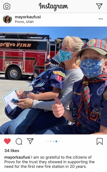 Then look who popped up on Mayor Kaufusi’s Instagram post! Although we were the 5th picture in, we were the only citizens pictured, and she mentioned the citizens in her post. What’s even more funny is that the photographer probably didn’t notice that Mark had pulled his mask up over his eyes because he said it was too bright and he had a headache!