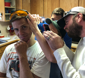 Andrew got stung by a hornet on the back of his leg, and Jon got stung behind his ear. Molly pulled out the stinger from Jon’s head!